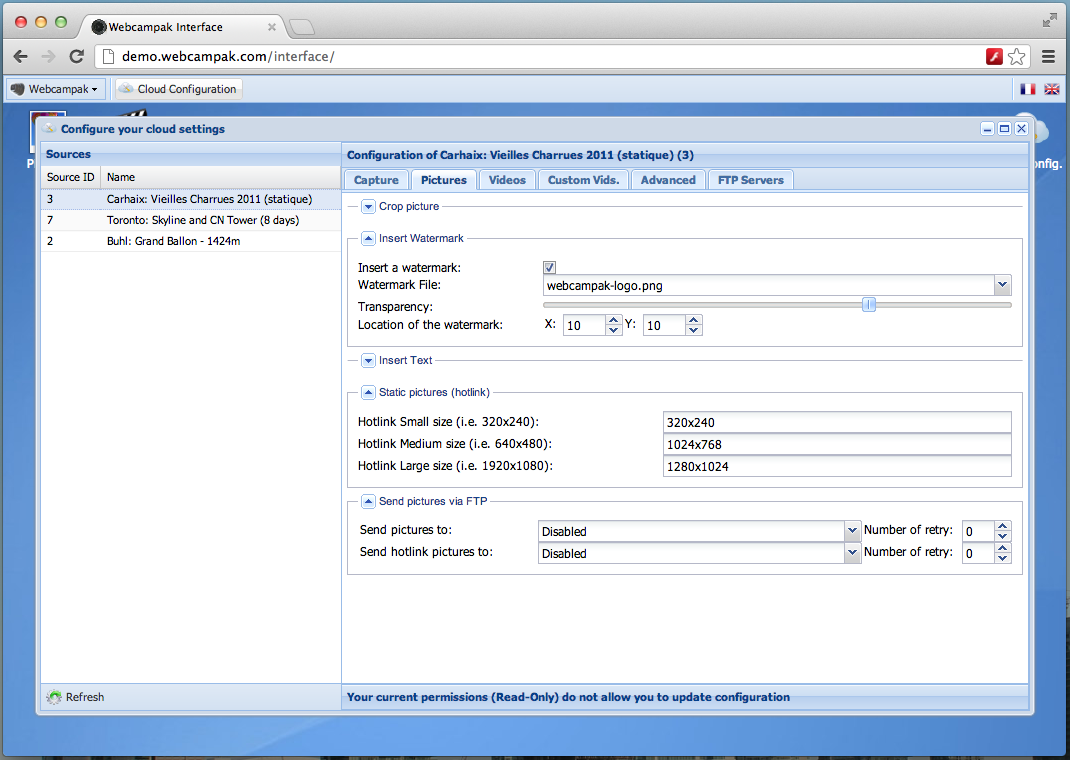 Webcampak Mobile interface